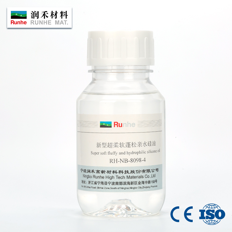 Super soft and hydrophilic silicone oil RH-NB-8098-4 is modified quaternary ammonium multi-copolymerized polymer polysiloxane.